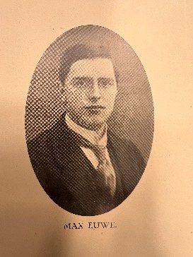 Max Euwe woonde in de periode 1924 -1926, nu honderd jaar geleden, in Rotterdam in de Kortenaerstraat, vlak bij de Witte de Withstraat en het centrum. Hij gaf wiskundeles op de HBS aan het Afrikaanderplein in Rotterdam-Zuid, ook wel de Boerenzij genoemd. De HBS was gevestigd in een noodgebouw, het huidige (school)gebouw moest nog worden ontworpen en gebouwd. Max Euwe was lid van de Nieuw Rotterdamse Schaakvereniging (N.R.S.V.) van de legendarische bestuurder, auteur en schaakpromotor mr. Oskam. Euwe vertelde dat hij in zijn carrière veel steun van mr. Oskam had ondervonden. Hij was al sinds 1921 schaakkampioen van Nederland. De foto komt uit Rotterdams Schaaknieuws 1925 met de volgende tekst van mr. Oskam(?):