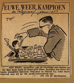 In 1951, 75 jaar geleden, werd het eerste NTS-Journaal uitgezonden. Het Journaal opende met de strijd tussen Max Euwe en Jan Hein Donner om het kampioenschap van Nederland. In huize Euwe stond alles op z’n kop, zo vertelde zijn oudste dochter Caroline in het interview. In 1956 werd het eerste NOS-Journaal uitgezonden.