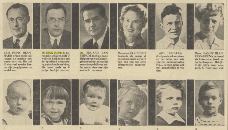 Eind 1958/begin 1959 deed Max Euwe mee aan een actie voor het Koningin Wilhelmina Fonds. Hij deed dit met niemand minder dan Prins Bernhard. Ter gelegenheid van het 50-jarig bestaan van de Vereniging ‘De Nederlandse Dagblad Pers’ boden de uitgevers van de dagbladen gratis advertenties aan voor deze actie. Het was een prijsvraag met een eerste prijs van 10.000 gulden, belastingvrij. De oplossing kon middels briefkaarten worden ingestuurd. Een briefkaart kostte 8 cent en per oplossing moest 25 cent worden bijgeplakt met een maximum van vier oplossingen per briefkaart. Dit ingevolge de voorschriften der Posterijen.